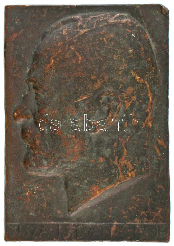 Hungary 1907. "Tisza István gróf" one-sided bronze plaque. Sign.: Fülöp Beck Ötvös (76x54mm) C:F patina, scratch, edge error