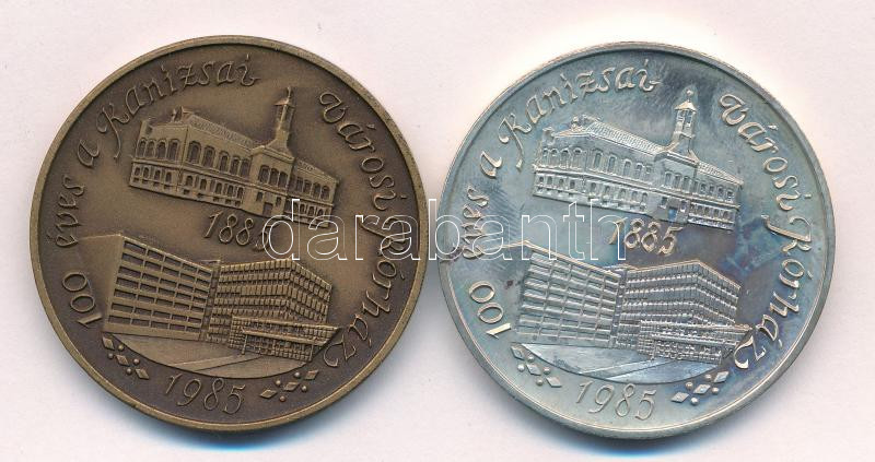 Description: Bogár Lívia (1957-) 1985. "Dr. Babocsay József városunk egykori főorvosa 1760-1838 / 100 éves a Kanizsai Városi Kórház 1885-1985" kétoldalas jelzett Ag és bronz emlékérem pár (36,36g/0,835/42,5mm) T:UNC,AU (eredetileg PP)