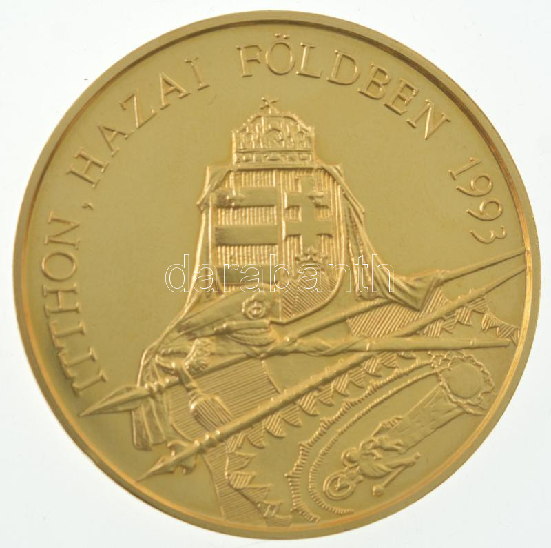 Bognár György (1944-) 1993. "Vitéz Nagybányai Horthy Miklós 1868-1957 / Itthon, hazai földben" kétoldalas aranyozott Cu emlékérem (42,5mm) T:PP