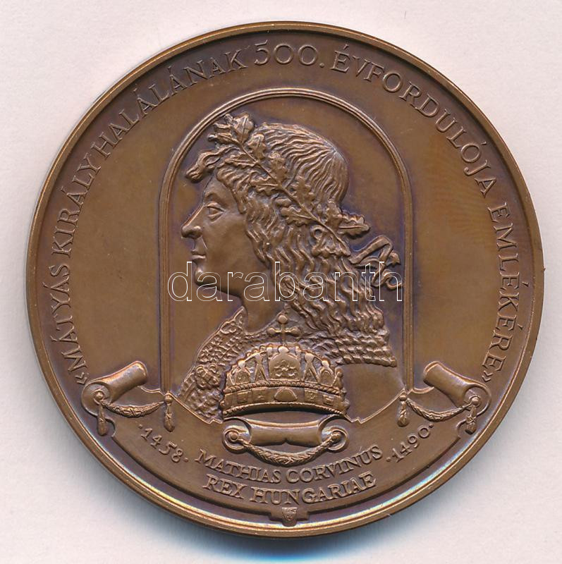 Bozó Gyula (1913-2004) / Szabó Géza (1939-) 1990. "Mátyás király ... https://www.darabanth.com/en/454-Online-auction/454.0/Numismatics/Hungarian-commemorative-medals-and-plaques~2000010/Bozo-Gyula-1913-2004-Szabo-Geza-1939-1990-Matyas-kiraly-halalanak-500-evforduloj~II3017783