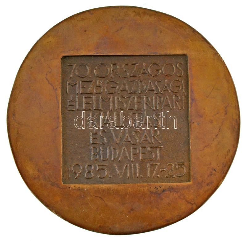 Csíkszentmihályi Róbert (1940-) 1985. "OMÉK (Országos Mezőgazdasági és Élelmiszeripari Kiállítás és Vásár Budapest)" bronz emlékplakett (80mm) T:XF
