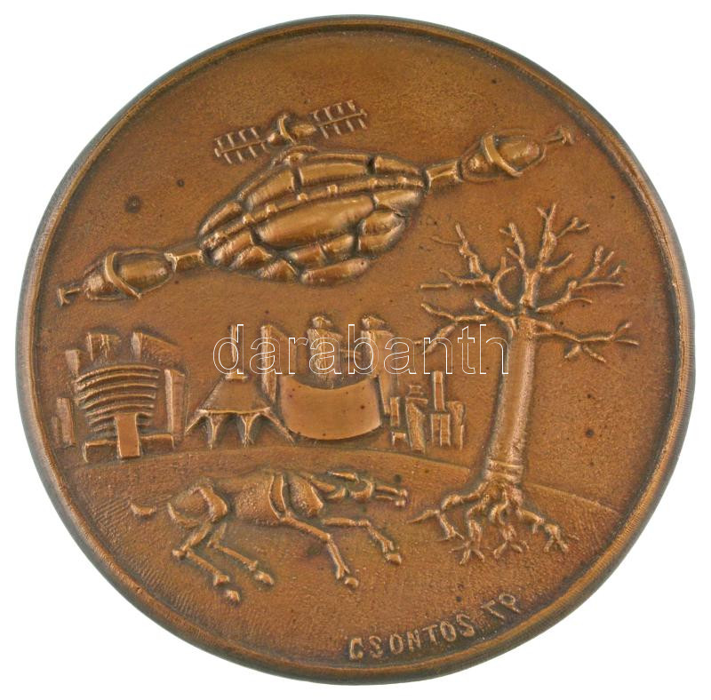 Csontos László (1925-2013) 1979. "A jövő" egyoldalas bronz e...