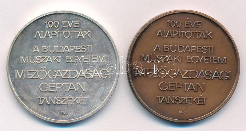 Description: Fritz Mihály (1947-) 1989. "100 éve alapították a Budapesti Műszaki Egyetem Mezőgazdasági Géptan Tanszékét" AG és bronz emlékérem pár (36,27g/0.835/42,5mm) T:UNC,AU (eredetileg PP)