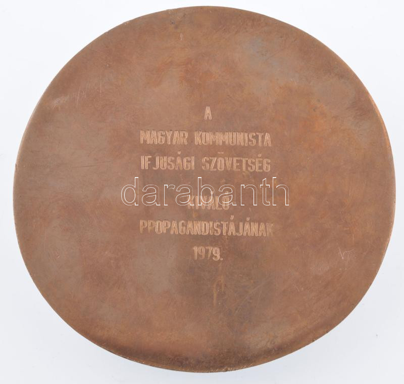 Description: Kiss György (1943-2016) ~1980. "Hűség a Néphez, Hűség a Párthoz! / A Magyar Kommunista Ifjúsági Szövetség Kiváló Propagandistájának" brozn emlékplakett (98mm) T:AU