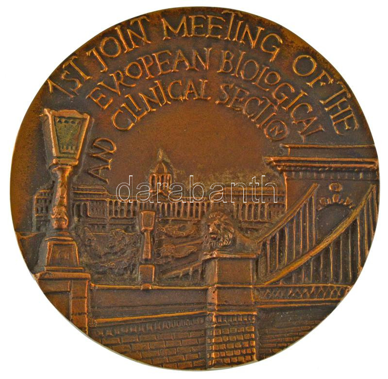 Description: Kiss Sándor (1925-1999) 1983. "Nemzetközi Gerontológiai Társaság - Budapest 1983. szeptember 1-3. / Az európai biológiai és klinikai szekció első közös gyűlése" nagyméretű bronz emlékplakett (~97mm) T:AU