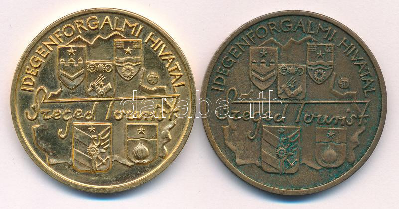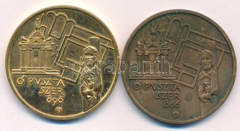 Tóth Sándor (1933-) DN "Szeged Tourist - Idegenforgalmi Hivatal / Ópusztaszer 896" aranyozott fém és bronz emlékérem tétel (42,5mm) T:UNC,AU patina