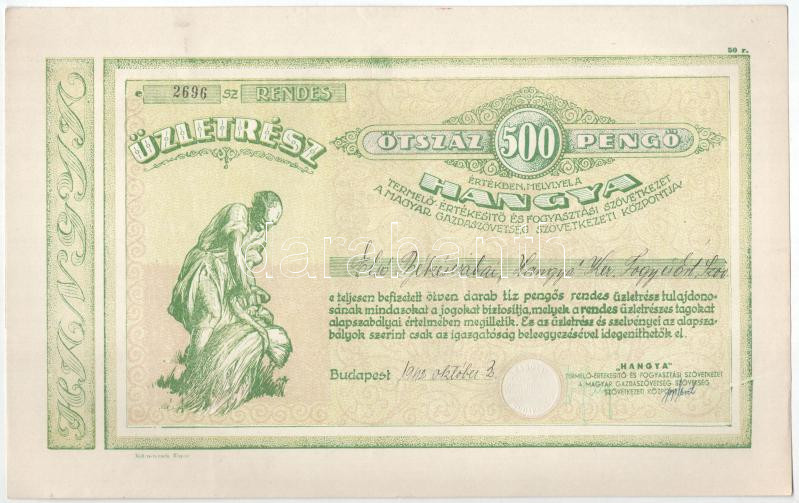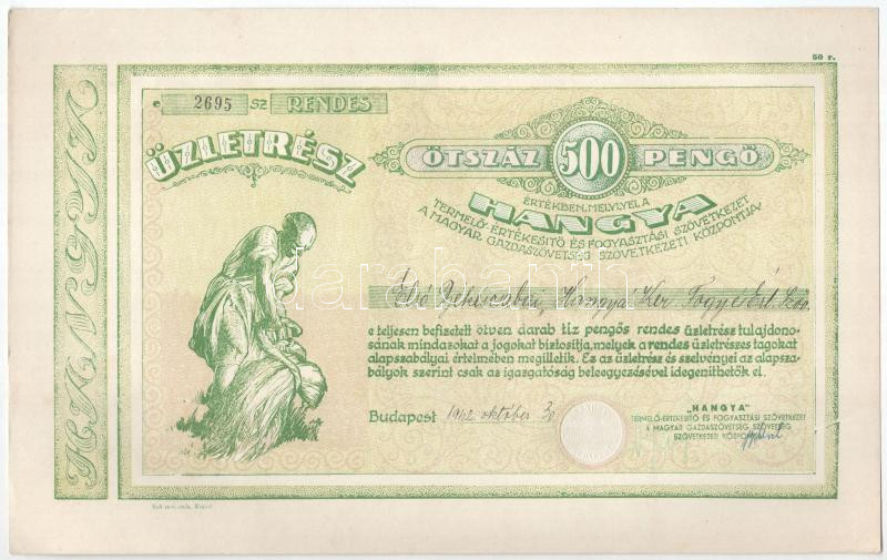 https://www.darabanth.com/en/454-Online-auction/454.0/Numismatics/Shares-and-Tickets~2000005/Budapest-1942-Hangya-Termelo-Ertekesito-es-Fogyasztasi-Szovetkezet-uzletresze-500P-rol~II2971937