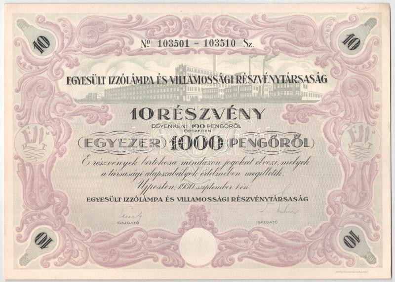 https://www.darabanth.com/en/454-Online-auction/454.0/Numismatics/Shares-and-Tickets~2000005/Ujpest-1930-Egyesult-Izzolampa-es-Villamossagi-Reszvenytarsasag-10-reszvenye-egyben-~II2982197