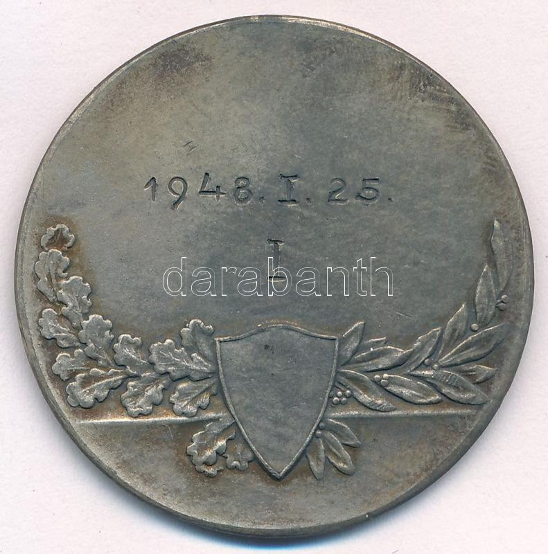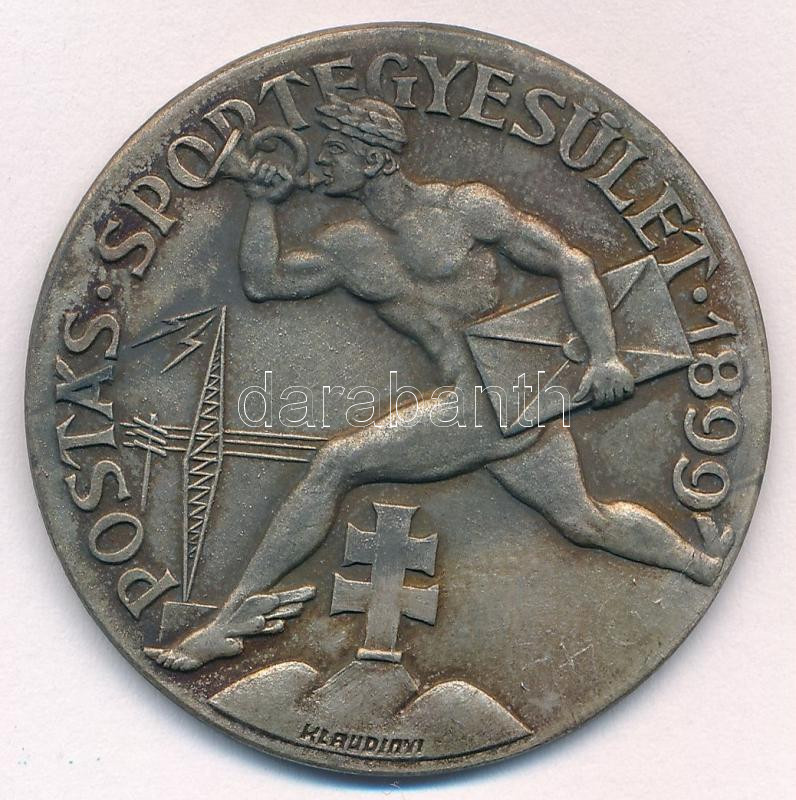 Klaudinyi László (1904-1984) 1948. "Postás Sportegyesület 1899" ezüstözött bronz díjérem hátoldalán "1948. I. 25. I." gravírozással (41mm) T:AU kopott ezüstözés, a peremen repedés