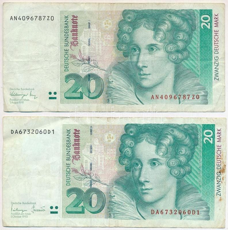 Németország 1991. 20M (2x) T:F Germany 1991. 20 Mark (2x) C:F Krause P...
