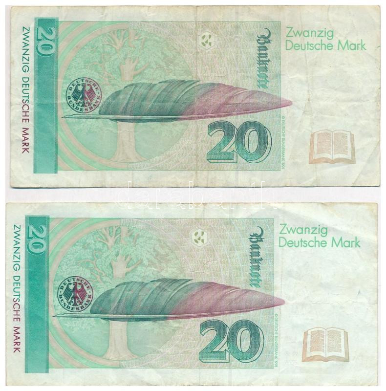 https://www.darabanth.com/en/454-Online-auction/454.0/Numismatics/Worldwide-banknotes~2000014/Nemetorszag-1991-20M-2x-TF-Germany-1991-20-Mark-2x-CF-Krause-P2339a~II3026595