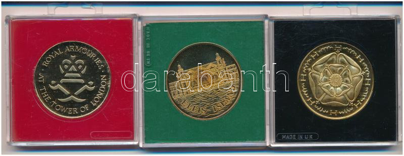 Description: Nagy-Britannia / Amerikai Egyesült Államok 3db klf modern emlékérem dísztokban, közte "VIII. Henrik" (2xklf), "Ellis-sziget" T:PP