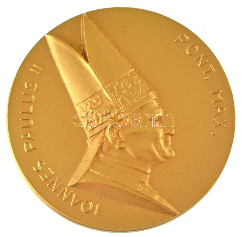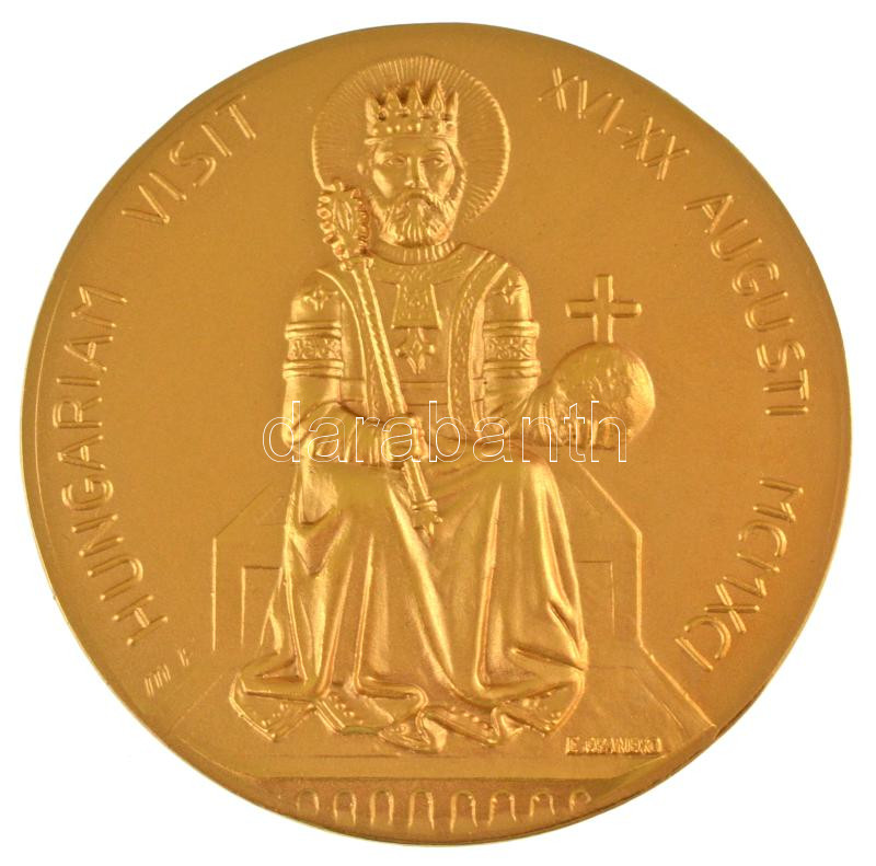 Vatican 1991. "Pope John Paul II / Hungarian visit, 16-20th August 1991" gilt bronze commemorative medallion in original case. Sign.: E. Cranero (50mm) C:UNC,AU a small scratch