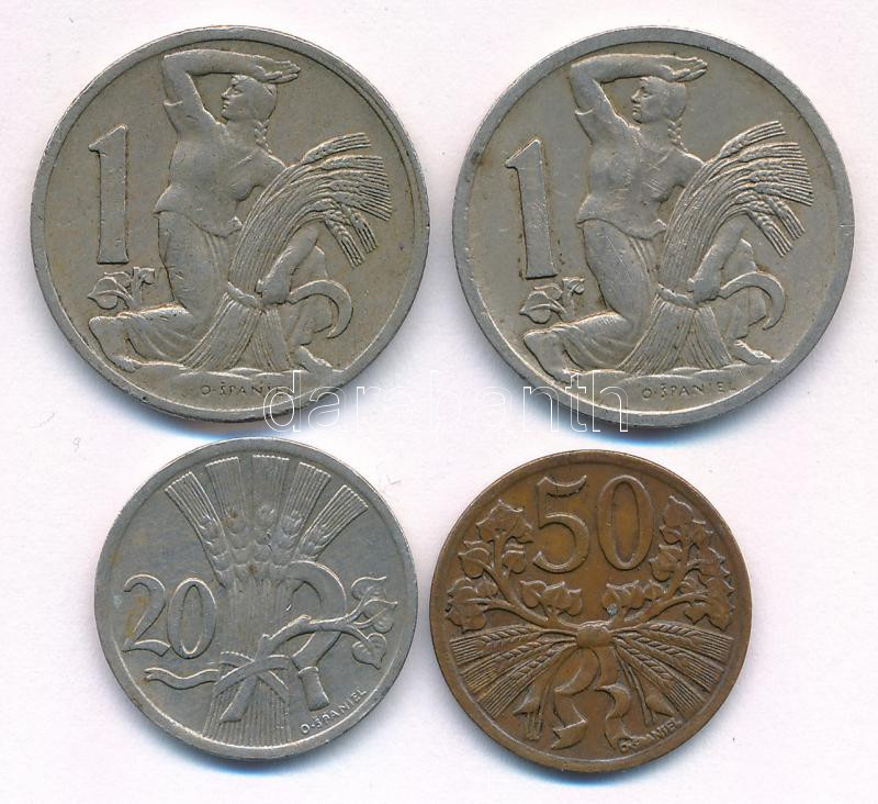 4db-os csehszlovák érmetétel, közte 1922-1925. 1K Cu-Ni (2xklf) + 1937. 20h Cu-Ni + 1947. 50h bronz T:XF