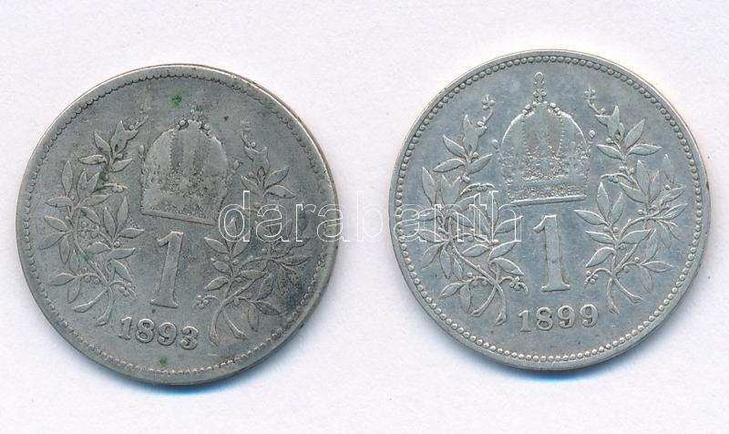 Description: Ausztria 1893-1899. 1K Ag "Ferenc József" (2xklf) T:F,VF kis patina Austria 1893-1899. 1Corona Ag "Franz Joseph" (2xdiff) C:F,VF small patina Krause#2804