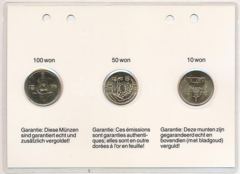 South Corea 1994-1995. 10 Won - 100 Won gilt (3xdiff), on decorative cardboard sheet C:AU