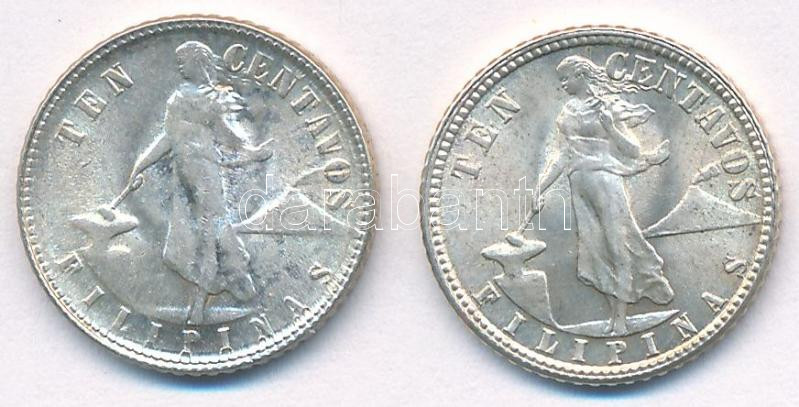 Description: Fülöp-szigetek / Amerikai Egyesült Államok Közigazgatás 1944-1945D 10c Ag (2xklf) T:AU Philippines / United States Administration 1944-1945D 10 Centavos Ag (2xdiff) C:AU