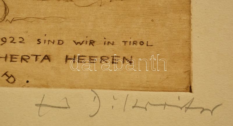Heiner Dikreiter (1893-1966): Aug-Sep 1922 sind wir Tirol. Rézkarc, papír, jelzett, 13,5×15,5 cm