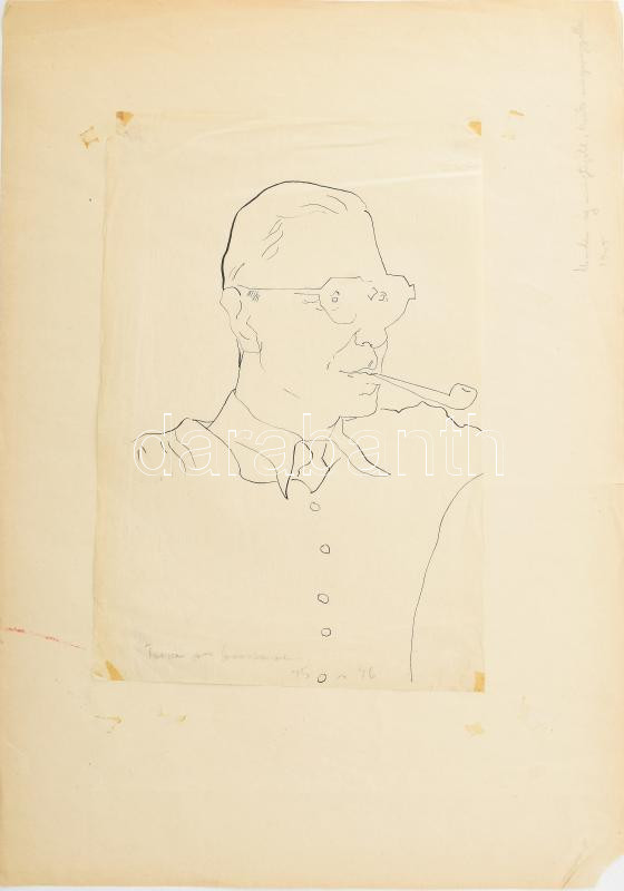 Jelzés nélkül: Pipázó portréja. Tus, papír, 27×18 cm. Sarkaiban papírr...