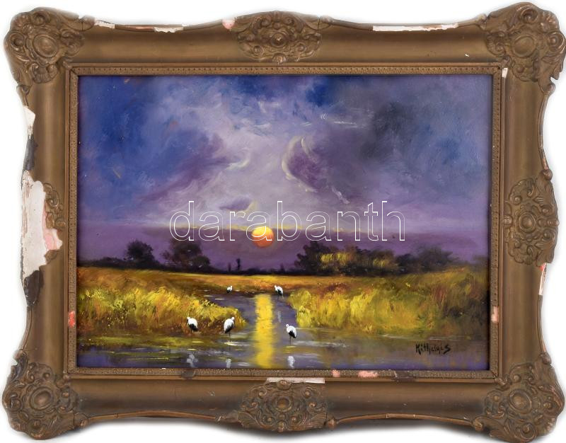 Kéthelyi jelzéssel: Gólyák. Olaj, karton. Sérült fakeretben. 35x50 cm.