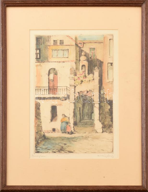 Csillag József (1894-1977): Bordighera. Színezett rézkarc, papír, jelz...
