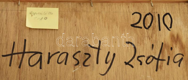 Haraszty Zsófia (1975-): Napsütötte. Akril, falemez, jelzett a hátolda... https://www.darabanth.com/en/454-Online-auction/454.0/Paintings-and-graphics/Paintings-and-graphics~500001/Haraszty-Zsofia-1975-Napsutotte-Akril-falemez-jelzett-a-hatoldalan-106-5x33-5-cm-Faker~II3030201