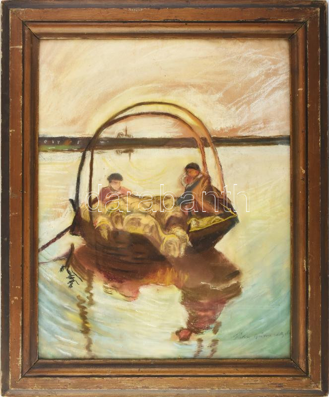 Iványi-Grünwald Béla (1867-1940): Ladikban. Pasztell, papír. 56x45 cm ...