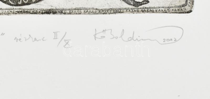 Kő Boldizsár (1969-): "A kakasért nyújtózkodók". Rézkarc, pa...