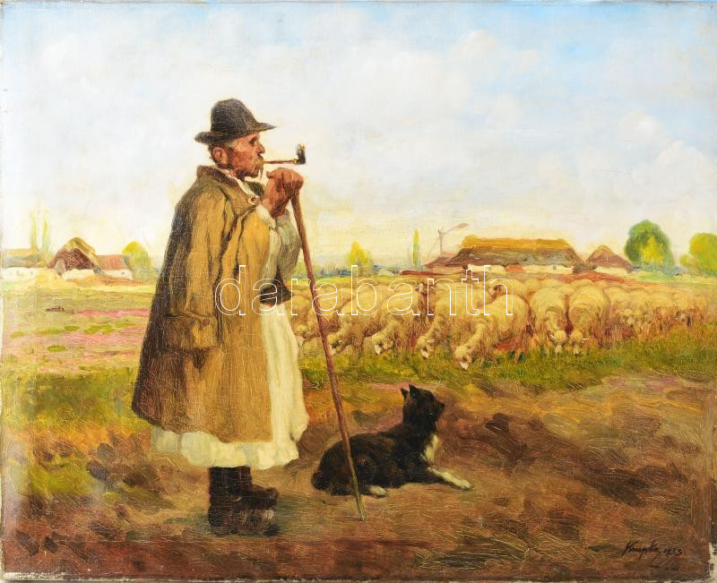 https://www.darabanth.com/en/454-Online-auction/454.0/Paintings-and-graphics/Paintings-and-graphics~500001/Krupka-Ferenc-1870-Juhasz-kutyajaval-1933-Olaj-vaszon-jelzett-Javitott-Jobb-also-sa~II3025345