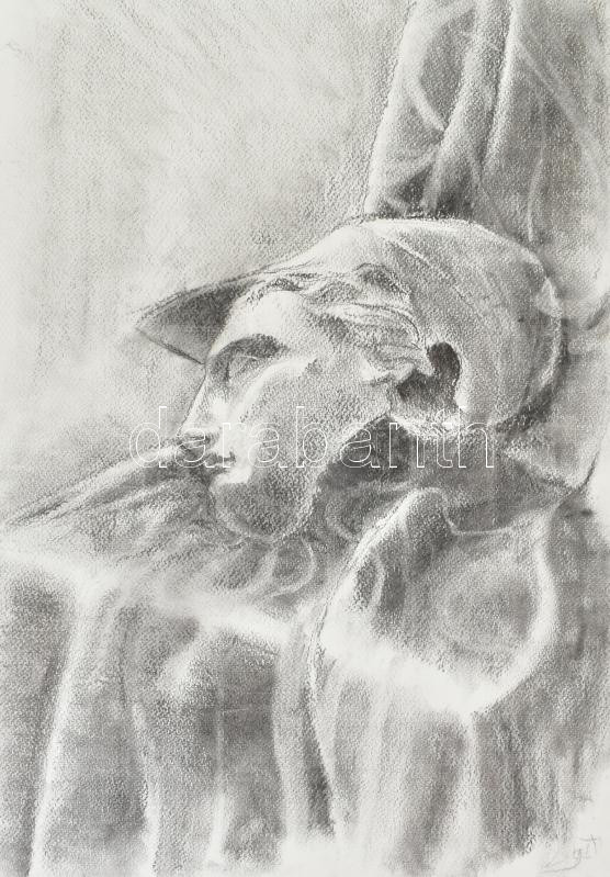 Ligeti Miklós (1982-), 2 db mű: Antik fej. Szén, ceruza, papír, egyik ...