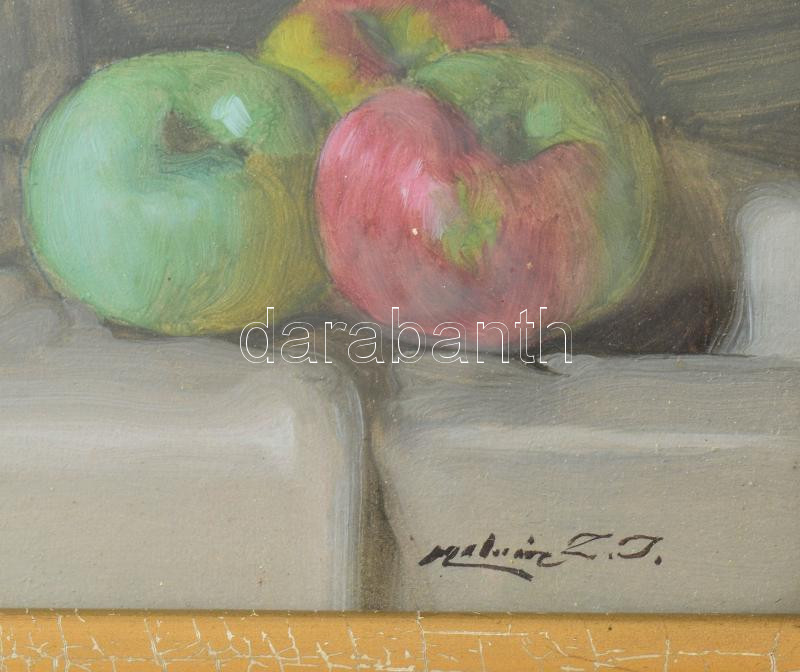 Molnár Z. János (1880-1960): Csendélet. Olaj, vászon, jelzett. Dekoratív, sérült fakeretben, 11x16 cm