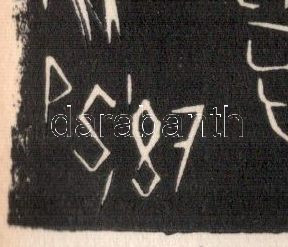 Portik Sándor (1959-): Szárhegyi Lázár kastély. Linómetszet, papír, je...