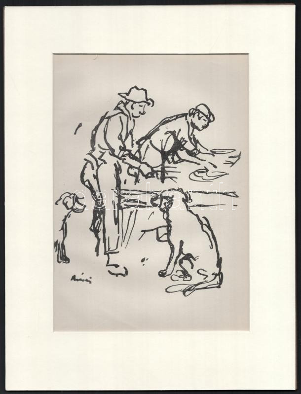 Rippl-Rónai József (1861-1927): Éhes kutyák. Cinkográfia, papír, jelze...