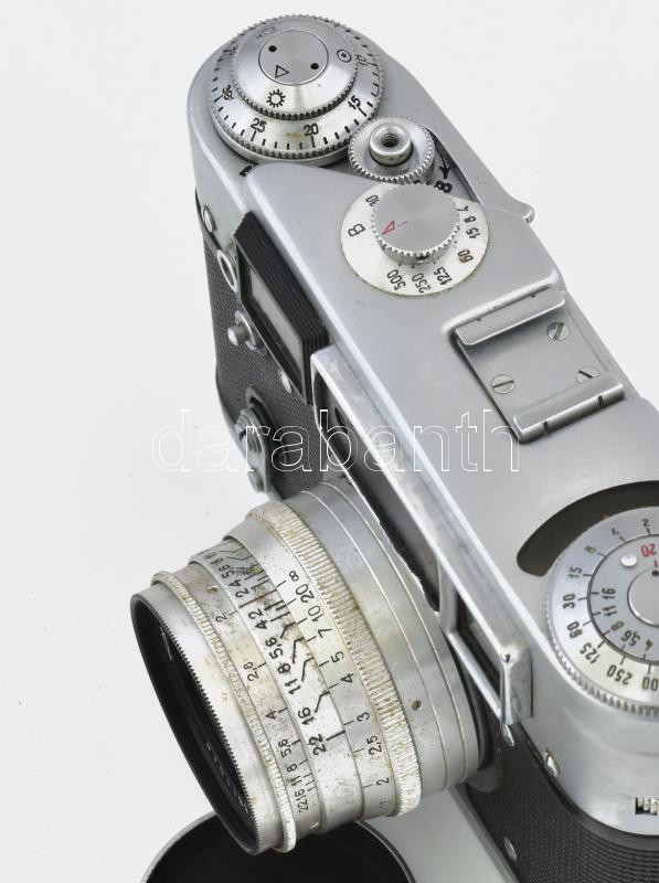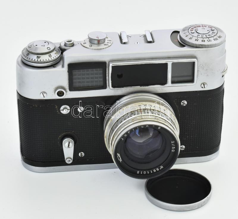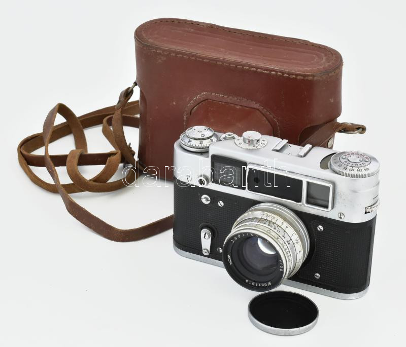 FED 4 szovjet fényképezőgép, Jupiter-8 2/50 objektívvel, eredeti bőr tokjában, dohos