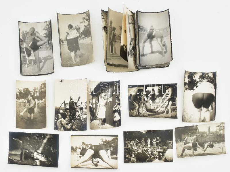 1929 Budapesti és egyéb strandokon, fürdőkben fényképező fotográfus, Rötzer Henrik 27 db fotója, 4,5×6,5 cm