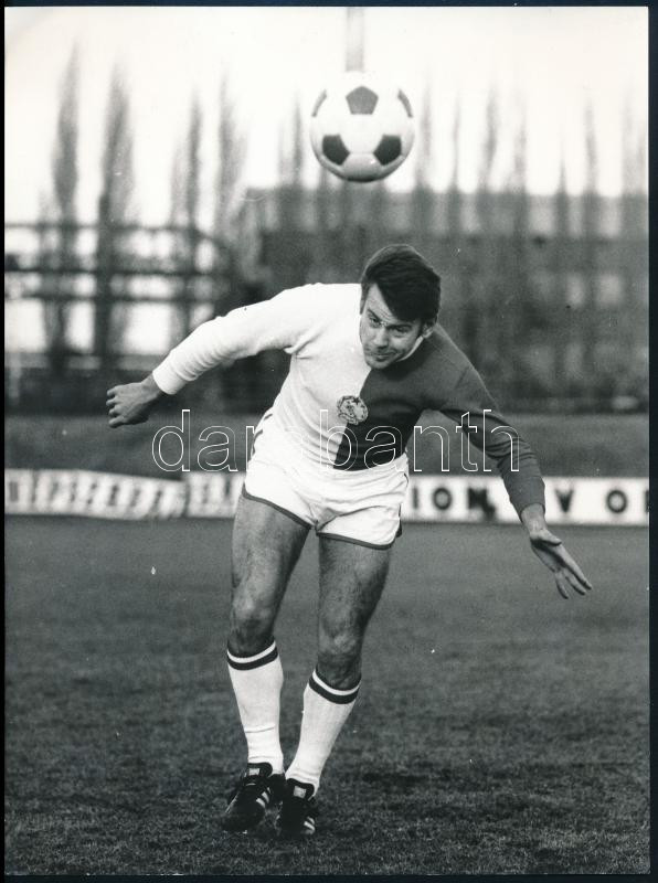 Szűcs Lajos (1943-2020) labdarúgó a Honvéd színeiben, nagyméretű fotó, 24x18 cm