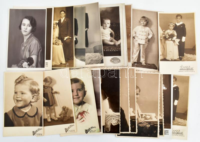 cca 1940 Vegyes családi fotólap tétel, közte gyerekfotók, és néhány esküvői kb 22 db