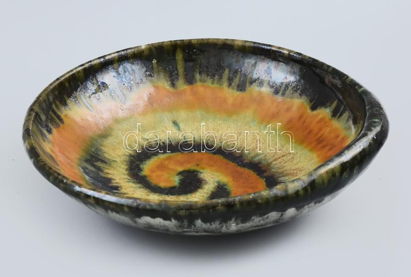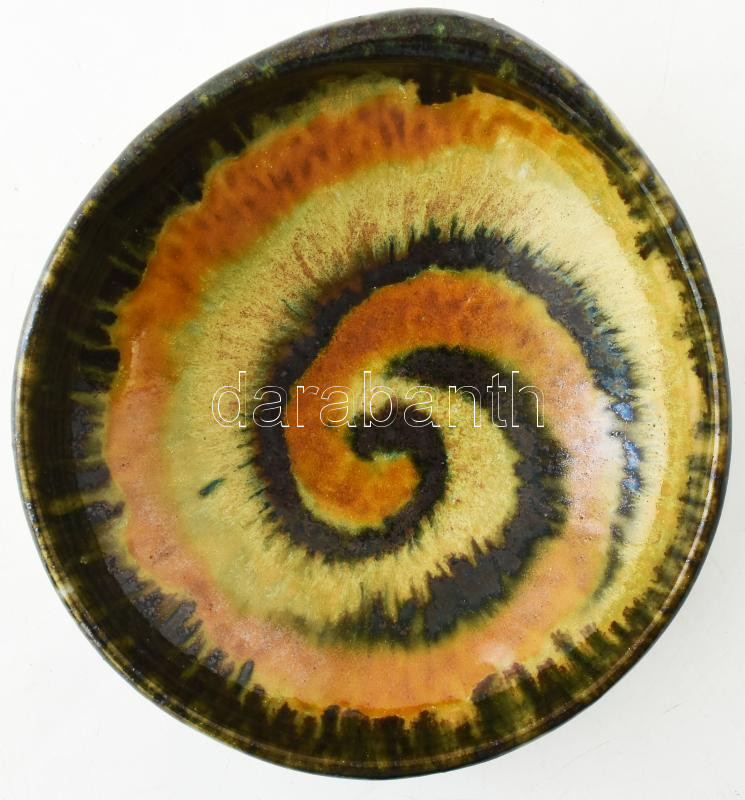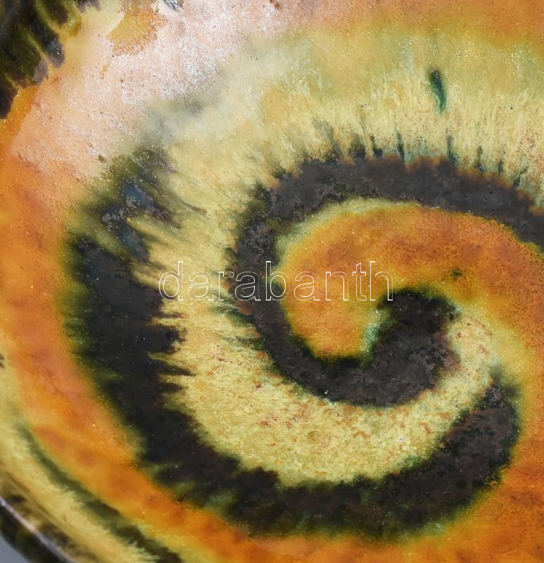 Gádor István (1891-1984): Csigavonalas tál. Mázas kerámia, kézzel fest...