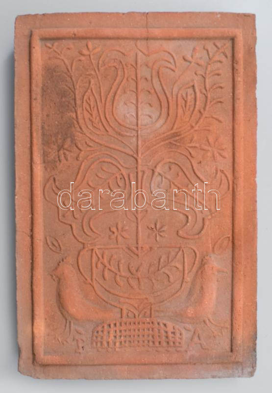Kalotaszeg, XIX. sz. vége, Kályhacsempe, TÁ monogrammal, kis repedéssel, sérüléssel, 31x21 cm CSAK SZEMÉLYES ÁTVÉTEL/ONLY PERSONAL COLLECTION