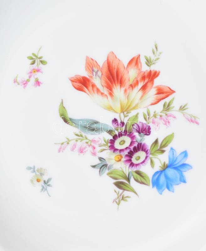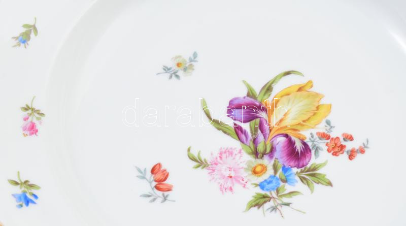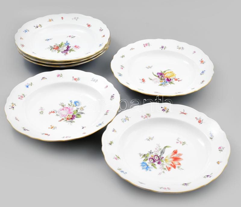6 db Fischer Emil leveses tányér. Kézzel festett, kézzel festett jelzéssel, kopással, egy tányéron lepattanással