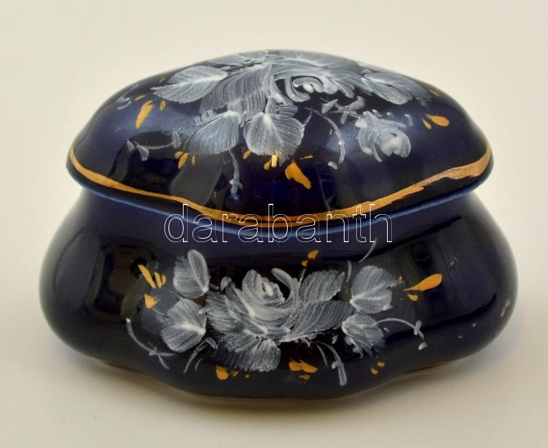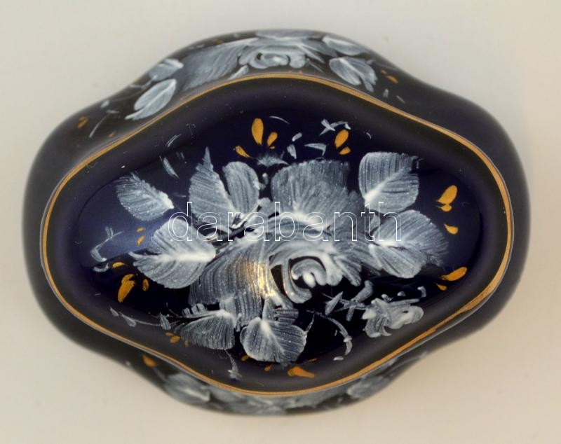 Herend jelzéssel kobaltkék virágmintás bonbonier, kézzel festett, jelz...