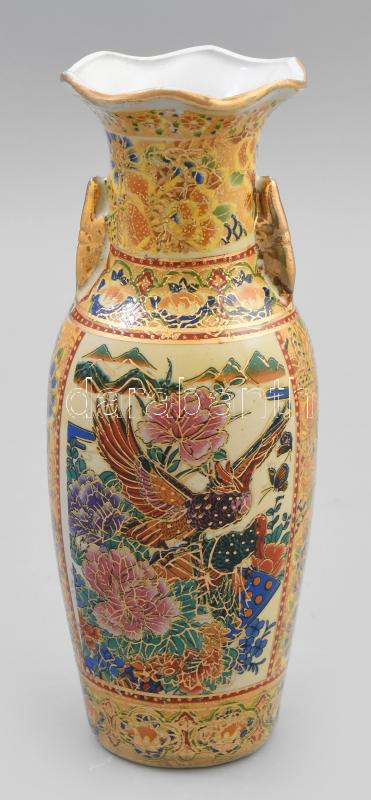 Kínai váza, porcelán, jelzéssel, kis kopással, m: 20 cm