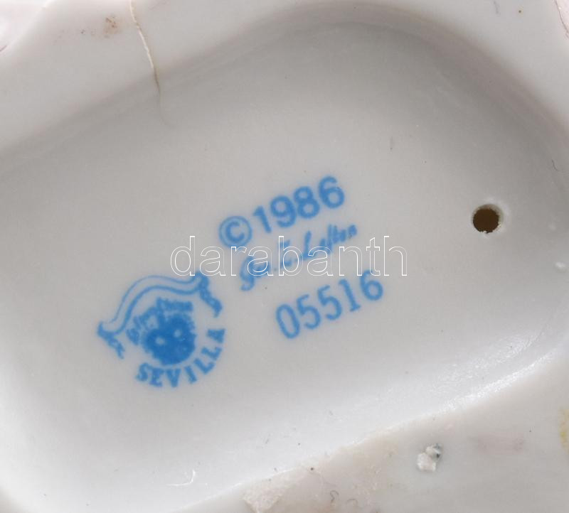 Sevilla porcelán bohóc nyúllal Kézzel festett, jelzett, hibátlan 16 cm