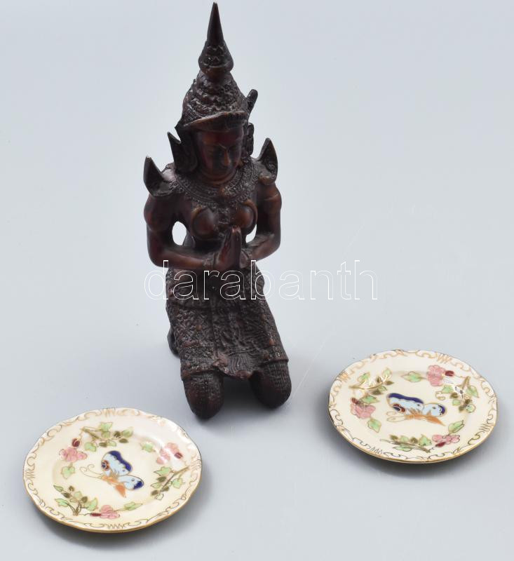 Vegyes tétel: 2 db Zsolnay tálka d: 8,5 cm + műgyanta szobor sérüléssel 21 cm