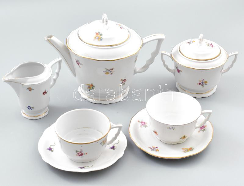 Zsolnay virágmintás porcelán teás/kávés készlet, össz. 7 darabbal (nem...