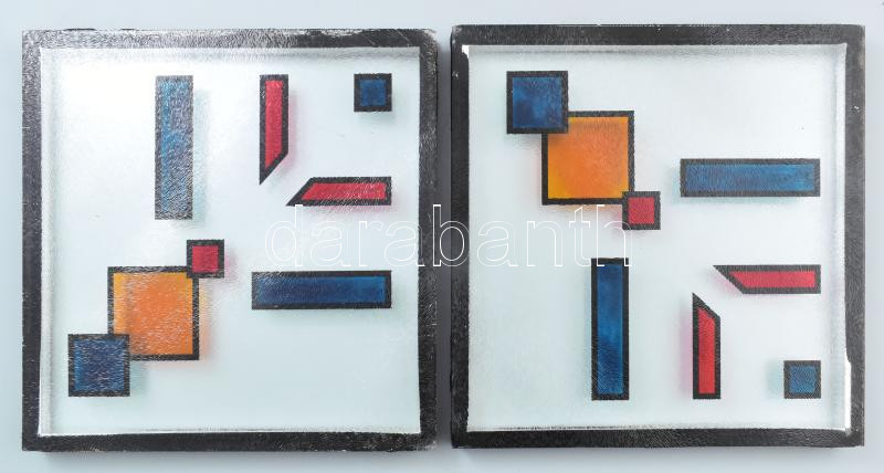 2 darab modern üveg dísz, dupla rétegű üveg. Beépíthető 26x26 cm