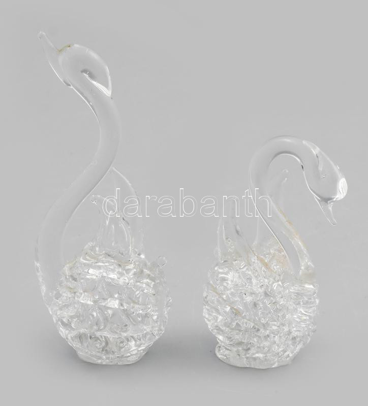 2 db üveg hattyú, kézzel készült, jelzés nélkül, hibátlan m: 6,5, 9 cm