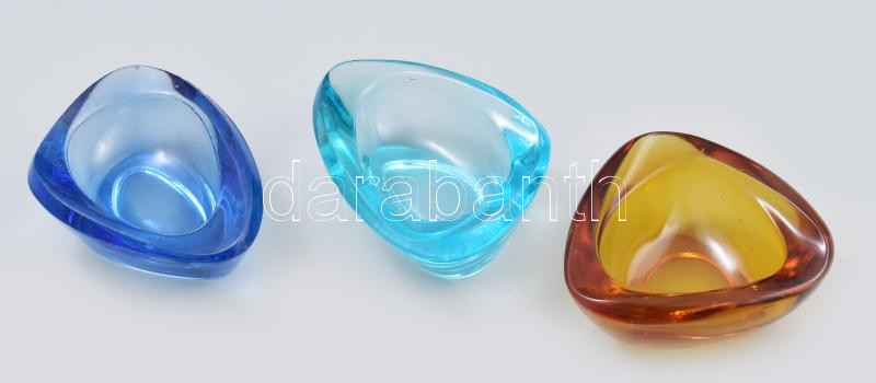 3 darab régi cseh üveg asztaldísz, öntött anyagában színezett üveg, hibátlan, h: 9-11,5 cm