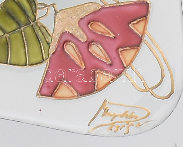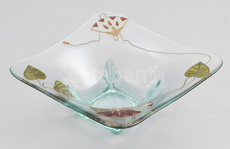 Festett üvegkínáló, olasz, szignóval, hibátlan, 19x19x7 cm