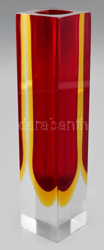 Murano Sommerso hasábváza, belül piros színezéssel, kopással, m: 20,5 ...